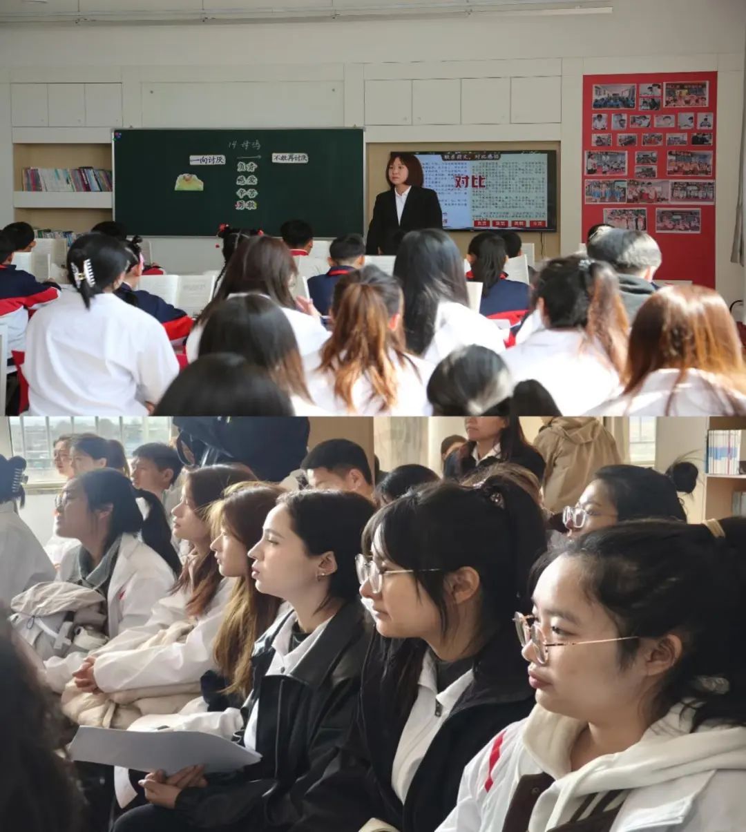 小学教育学院的学生们走进课堂,仔细观察教师授课的每一个环节,从知识讲解到与学生的互动,不放过任何细节。同时,他们积极与师生交流,进行课堂诵读指导,帮助学生们进一步提升诵读技巧与对诗词的理解。