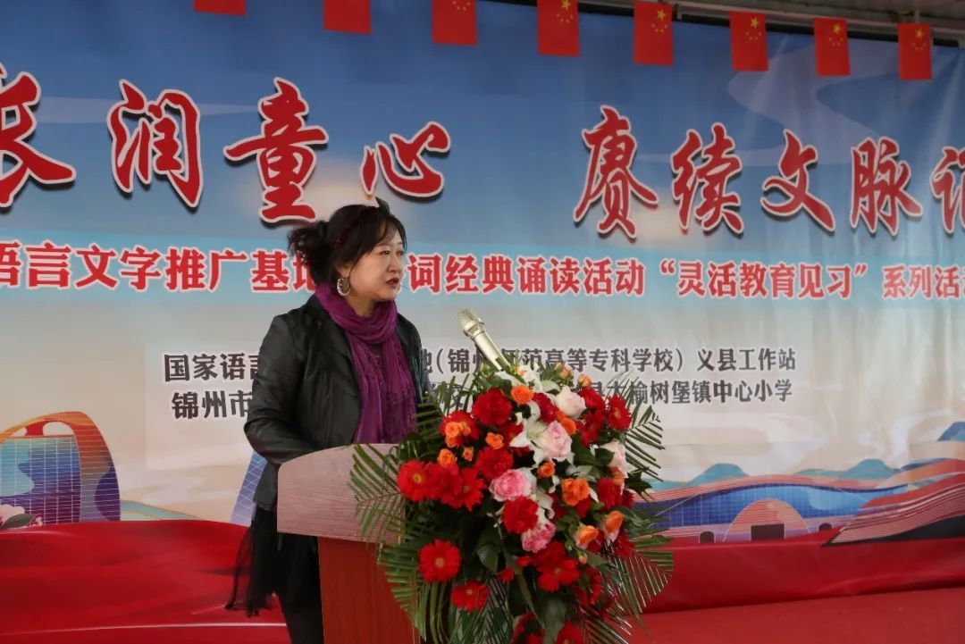 国家语言文字推广基地(锦州师范高等专科学校)基地办副主任、教育督导中心主任齐心,干事孟杰,小学教育学院院长朱晓博,党总支书记任凯,副院长秦朗,副书记李晓雪、干事张金和学生代表,义县教育局局长陈乃涛、副局长马长林、基础教育股股长张宏伟,义县教师进修学校党总支书记贾国祥、校长刘文辉、培训部主任高亮及部室人员,头台中学副校长于凤祥,义县大榆树堡中心小学校长韩冰携全体师生参加此次活动。