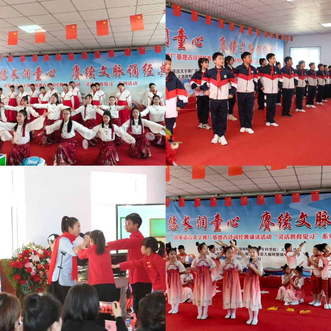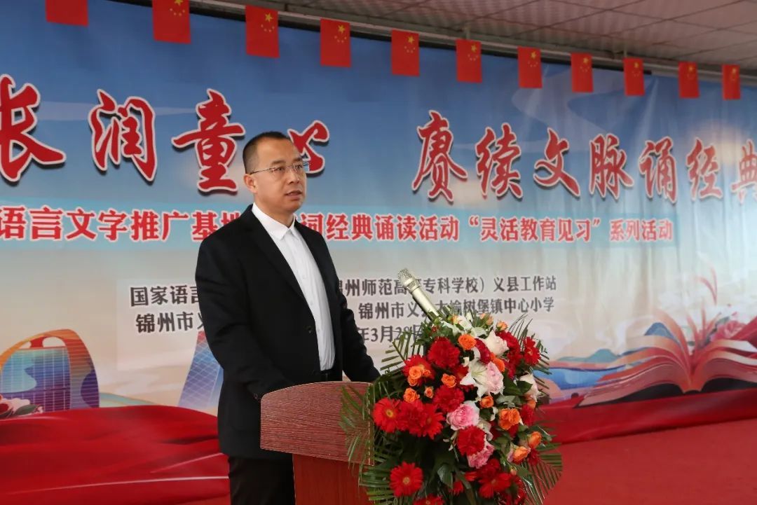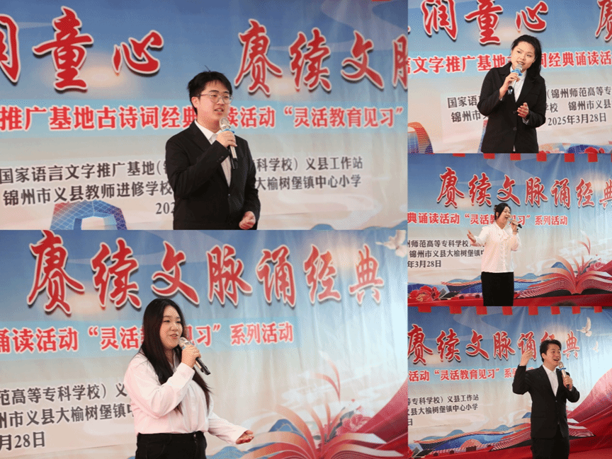 2025年3月28日,国家语言文字推广基地(锦州师范高等专科学校)与义县教师进修学校工作站在义县大榆树堡镇中心小学联合举办“诗韵悠长润童心 赓续文脉诵经典” —国家语言文字推广基地经典诵读暨小学教育学院灵活教育见习活动。