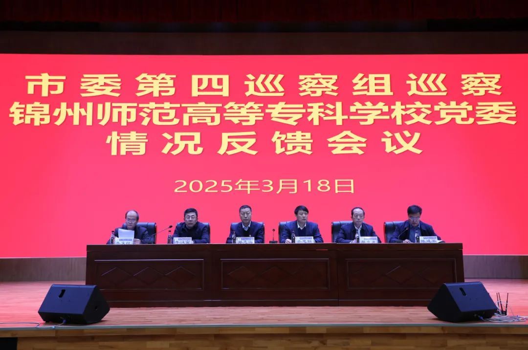 根据十三届市委巡察工作统一部署,2025年3月18日,市委第四巡察组向锦州师专党委反馈了巡察情况。市委第四巡察组组长牛汉富向锦州师专党委领导班子进行了反馈,市委巡察工作领导小组成员、市委巡察办主任齐忠联向锦州师专党委传达了市委和市委巡察工作领导小组关于巡察整改的要求,市政府副市长孙志海对巡察整改工作提出具体要求。市教育局党组书记、局长周志龙作为主管局领导进行表态讲话,锦州师专党委书记、校长陈建军作表态发言并主持会议。