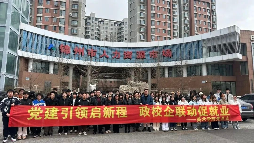 为深入学习贯彻党的二十届三中全会精神,积极响应国家关于促进大学生就业的号召,4月9日,我校美术学院党总支联合古塔区人力资源和社会保障服务中心、锦州市人力资源市场开展“党建引领启新程 政校企联动促就业”主题党日活动,联合共建,破解大学生就业难题。我校美术学院党总支副书记李爽,副院长关淼、师生党员及学生代表共计100余人参加。