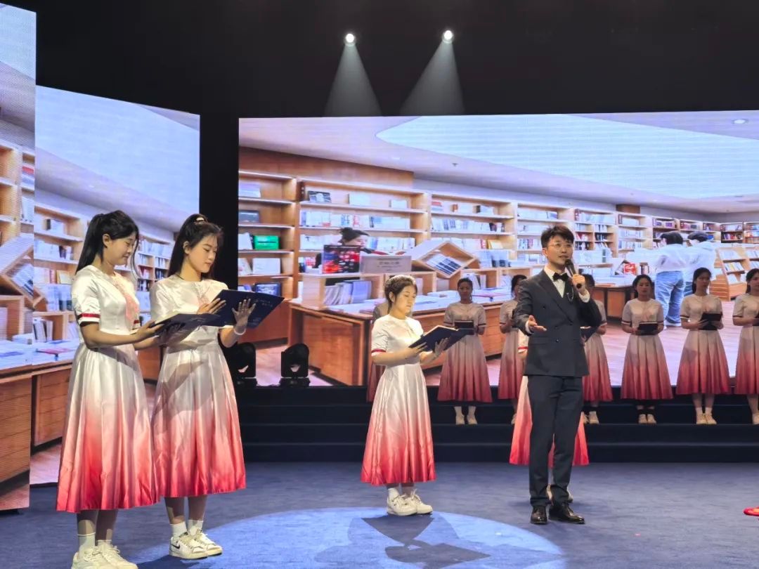 启动仪式上,二十名身着红色渐变长裙的文学院学生和锦州新闻媒体集团的6位主持人携手开启“校媒融合”新篇——朗诵诗歌《书香织锦绣》。此次合作,是文化传承的跨界突破,两代人同台,用融媒技术点亮舞台,以青春活力演绎经典,既展文字之美,更用行动诠释 “校媒融合” 如何让书香走进课堂、跃上屏幕、融入生活。