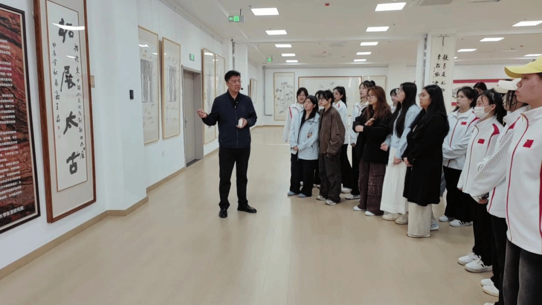 陈建军带领学生们走进校史馆。在一幅幅珍贵的历史照片、一件件饱经岁月沧桑的实物面前,陈建军生动讲述着学校自创办以来的百年风雨历程。从建校初期的艰难起步,到在教育改革浪潮中的不断探索与创新;从培养出的一批批优秀人才,到在学术研究、社会服务等领域取得的卓越成就,每一个阶段都凝聚着历代师生的智慧和汗水。陈建军在讲解中指出:“这些鲜活的校史素材,正是党的二十大报告用好红色资源要求的校本化实践,新时代的青年学生要在触摸历史中筑牢强国有我的信念。”