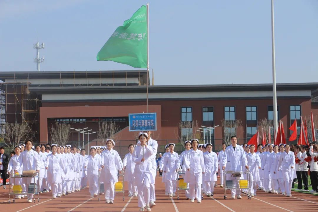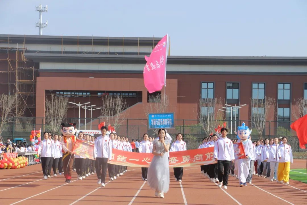 4月29日上午,伴随着激昂的运动员进行曲,国旗方阵、彩旗方阵、花束方阵,裁判员方阵,教工方阵及二级学院学生代表队依次入场。各学院以“体育+文化”为主题设计创意表演,融合传统文化、专业特色与青春活力,赢得全场阵阵掌声。陈建军宣布大会开幕。体育教育学院、学前与音乐教育学院、小学教育学院,环境与健康学院进行了精彩的团体操表演。