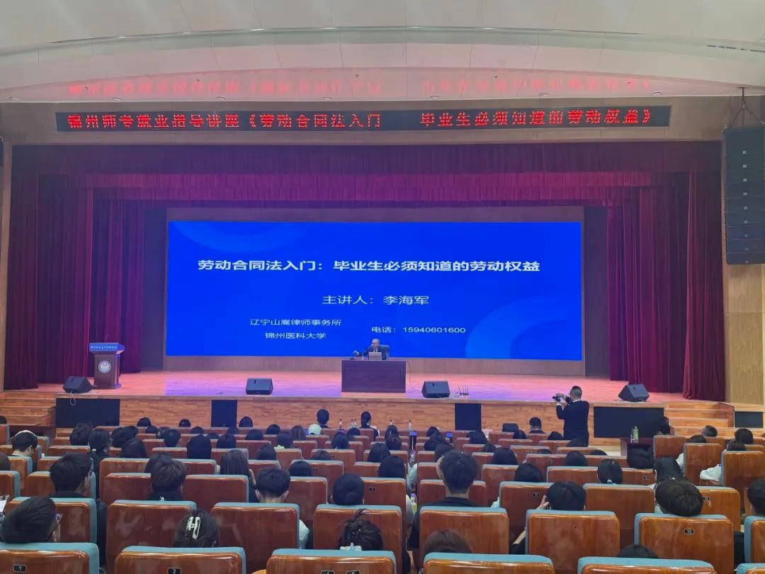 招生就业指导处处长胡俊岩为四位就业创业法律顾问颁发锦州师专创新创业导师聘书。李海军律师做题为《劳动合同法入门讲座——毕业生必须知道的劳动权益》的就业指导讲座。李律师基于其深厚的学术造诣与实务经验,从理论内容和实际案例两方面系统解析了大学生就业全流程中的法律风险。在劳动合同订立专题环节,李律师结合《中华人民共和国劳动合同法》重点强调了劳动合同的订立原则,通过典型案例阐释订立劳动合同的时间、具体的书面形式要求和未订立劳动合同的后果,着重强调了个人信息安全保护及违法收费的应对策略。