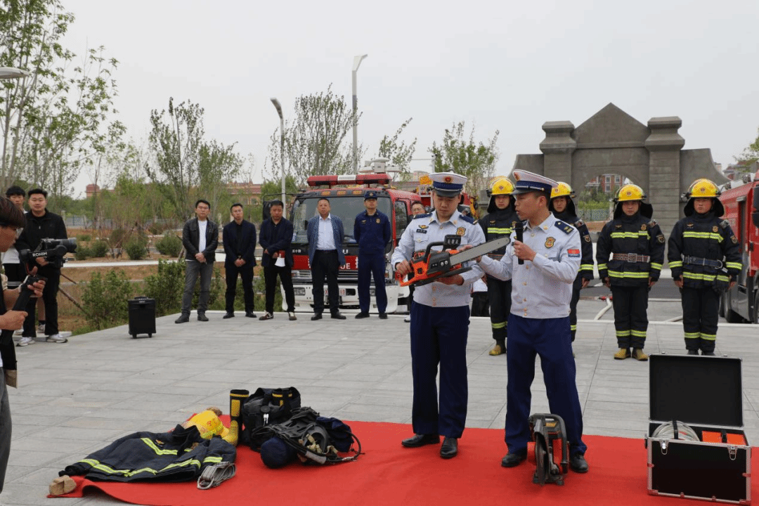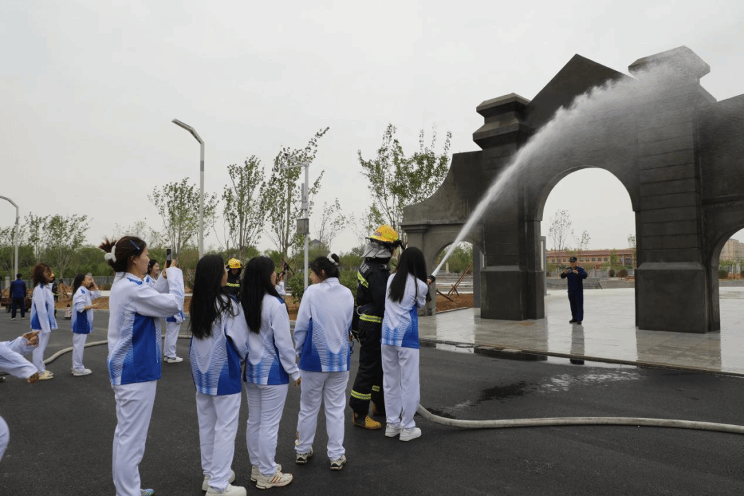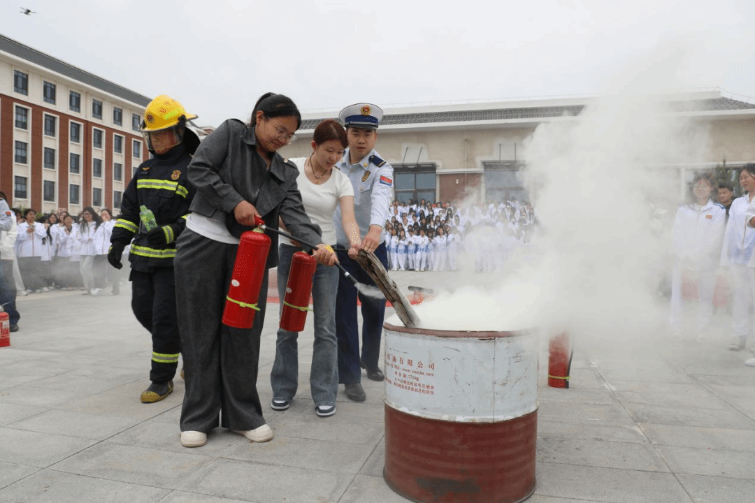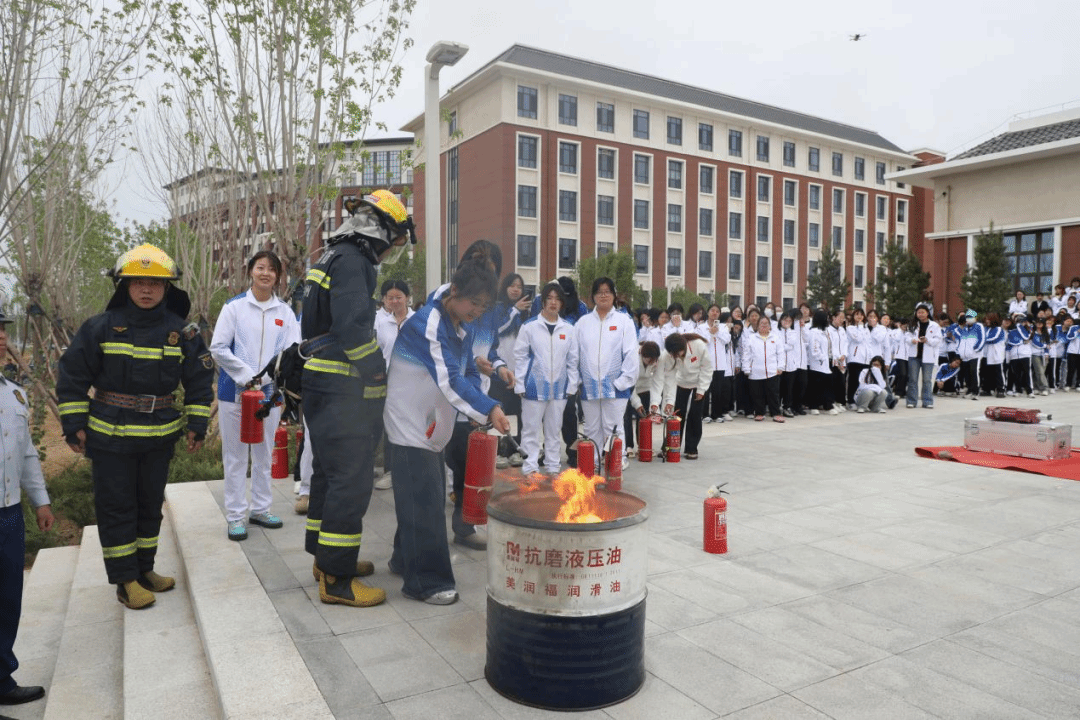 在随后的灭火实操环节,消防救援大队教员详细地讲解了干粉灭火器的使用方法,演示了灭火器“提、拔、握、压”四个步骤操作法,指导现场师生正确使用灭火器扑灭模拟火源。消防救援大队指战员还在现场详细展示、讲解了现实生活中,一些消防器材的作用和正确使用方法。