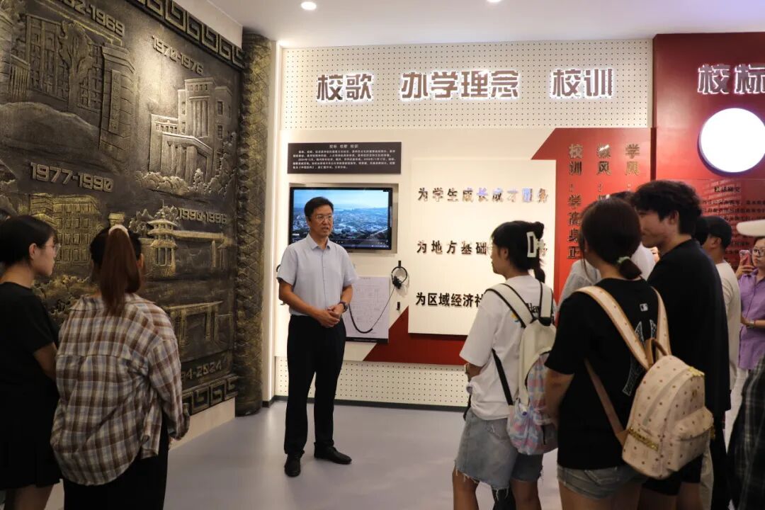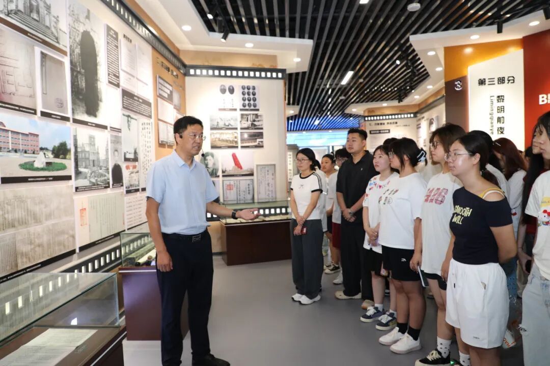 9月4日上午,校党委书记、校长陈建军走进校史馆,以“行走的思政课”深化教育实效。陈建军通过追溯学校百十年历程中的红色印记,从1914年建校时师生们在民族危难中坚持办学的艰难岁月,到“九一八”事变后我校学生积极参加抗日活动,再到1945年学生茹古香在抚宁打响抗日第一枪,引导青年学子感悟历史担当,传承师专精神。这堂沉浸式思政课通过场景再现、文物展示、师生互动等形式,将抽象的理论转化为鲜活的历史叙事。