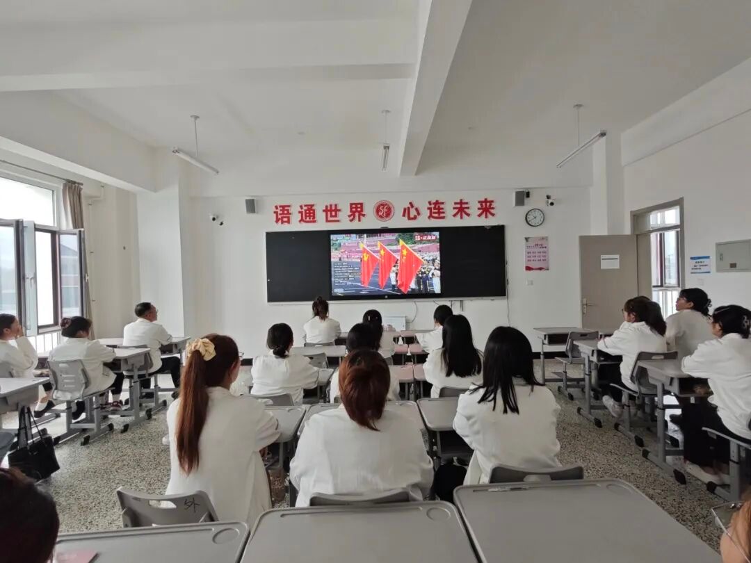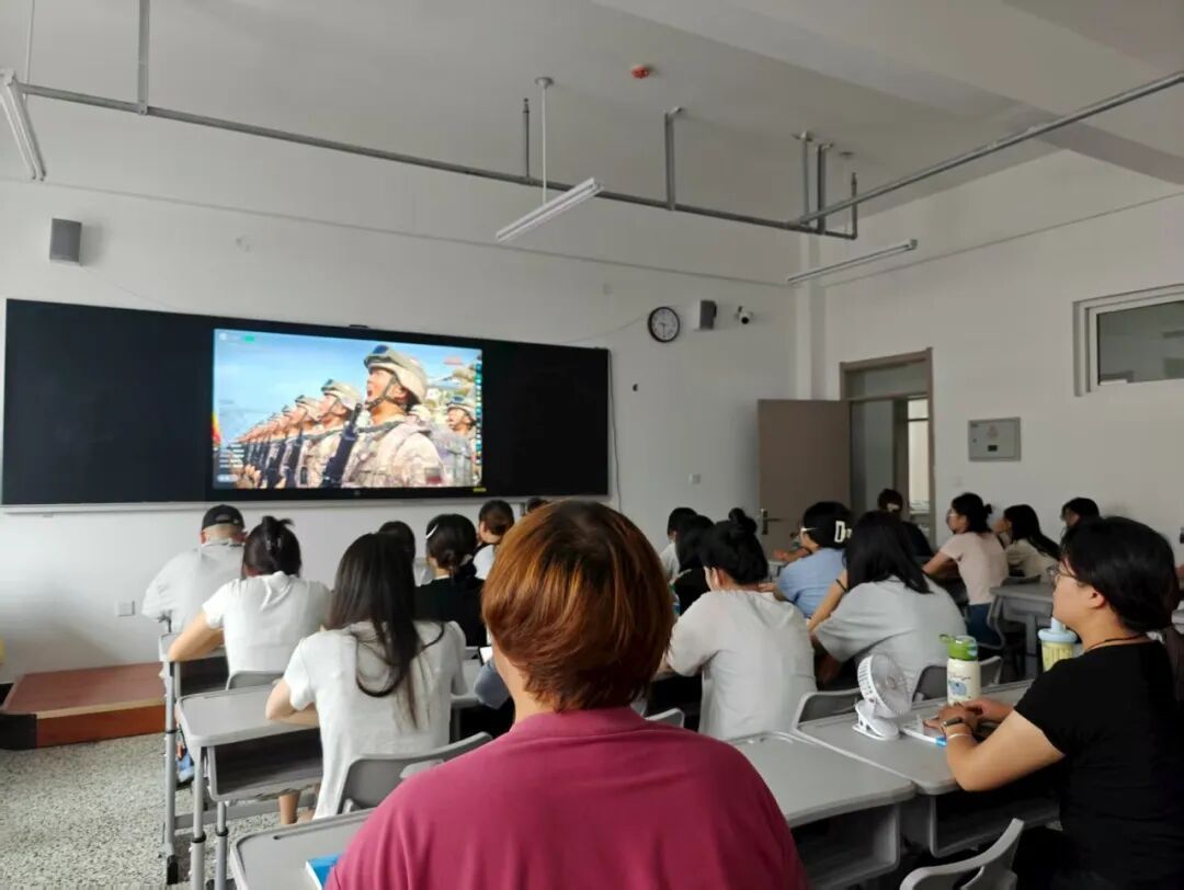 我校通过多种形式组织师生观看大会实况直播,当师生们看到威武的中国人民解放军将士、精良的武器装备组成的一个个整齐的方阵,在党和国家领导人的检阅下,气势磅礴地通过天安门广场时,骄傲与自豪之情洋溢在整个校园当中。