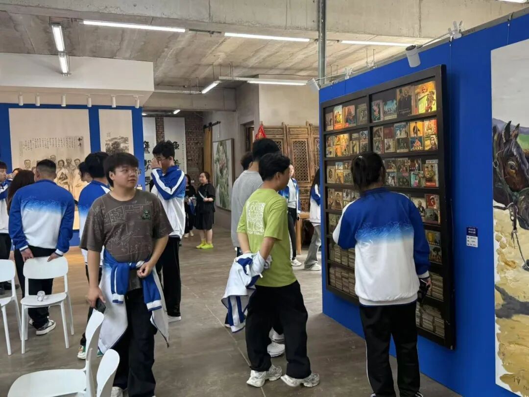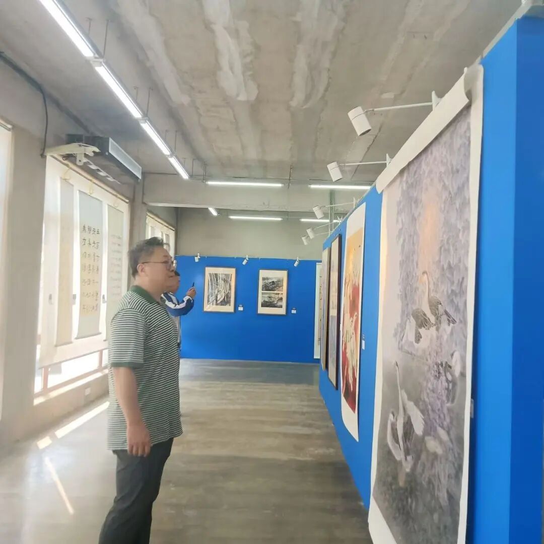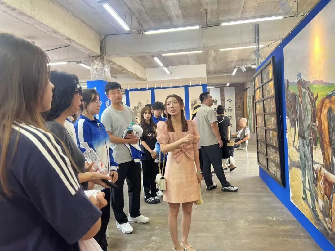 最后,师生们参观了大地美术馆的书画作品展览,与美术馆的王晨老师在专业创作上进行了碰撞,青年党员教师陈祉伊在现场给学生们上了一次微党课,结合丁雪老师的展品讲述美学思想,引导青年学子感悟艺术为人民服务的根本宗旨,让优秀传统文化在创新转化中焕发新生机,为乡村振兴注入持久的精神动力。