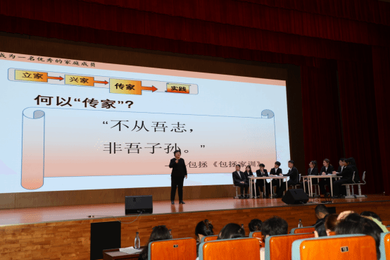 整场活动采用“教学展示+领导和院长点评+专家讲座”模式进行,是一场精彩纷呈的教研盛宴。在教学展示环节中,由四位课堂教学亮点突出的青年教师进行现场示范。马克思主义学院李欣老师选取《思想道德与法治——注重家庭家教家风》一课,以“我们最终要成为怎样的人”这一大学生核心困惑开篇,以马院“追光小队”学生情景剧《晒单与晒爱》为切入点,以“立家—兴家—传家”为主线层层递进,由个人到家到社会的情感价值延伸。