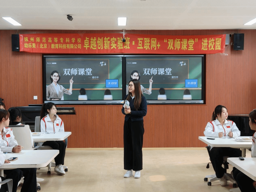 签约仪式后,幼乐美教育研究院王微院长带来“从课堂到未来的赋能之旅”专题讲座。她结合行业发展趋势与企业实践经验,围绕产需对接核心要点展开分享,为在场师生传递前沿教育理念与实践思路,进一步夯实双方合作的认知基础。与此同时,在学前与音乐教育学院智慧实训室,幼乐美辽宁区域培训讲师张祉梦还为学前教育、早期教育和婴幼儿托育服务与管理专业学生带来“走进3-6岁儿童世界”“走进生命早期1000天”两期双师公益课堂,让学生们在实践案例中收获成长。