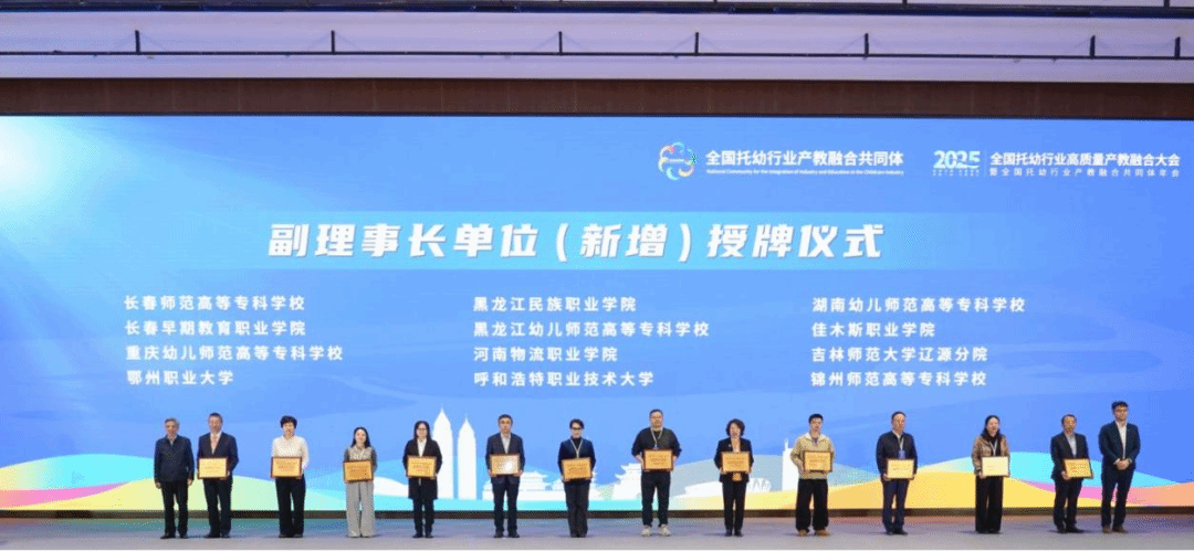 11月11日-12日,2025全国托幼行业高质量产教融合大会暨全国托幼行业产教融合共同体年会在浙江金华隆重召开。本次大会以“标准引领 科技赋能 托幼一体 生态育人”为主题,汇聚全国托幼行业专家学者、院校及企业代表,共商产教融合发展新路径。我校受邀出席大会并作专题分享,同时,我校凭借在托幼人才培养领域的深厚积淀与突出成效,成功当选托幼行业产教融合共同体新增副理事长单位,学前与音乐教育学院同时获教育部供需对接就业育人项目授牌。