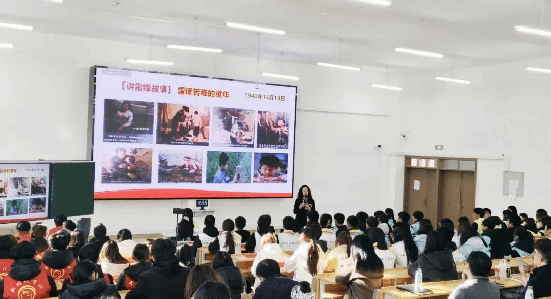 分享环节后,青春誓言宣誓环节正式开启。全体同学起立,身姿挺拔、神情坚毅,高举右拳庄严宣誓:“青春啊!永远是美好的,可是真正的青春,只属于这些永远力争上游的人,永远忘我劳动的人,永远谦虚的人。弘扬雷锋精神,做雷锋式职业人!”铿锵有力的誓言响彻全场,既饱含着青年学子对美好青春的执着追求,更凝聚着践行雷锋精神、勇担时代使命的坚定决心。激昂的宣誓声不仅点燃了现场每一位师生的热情,更将雷锋精神的种子深深植根于青年心中,进一步激发了大家以实际行动传承奉献品格、锤炼职业素养,在青春赛道上书写雷锋式职业人担当的昂扬斗志。