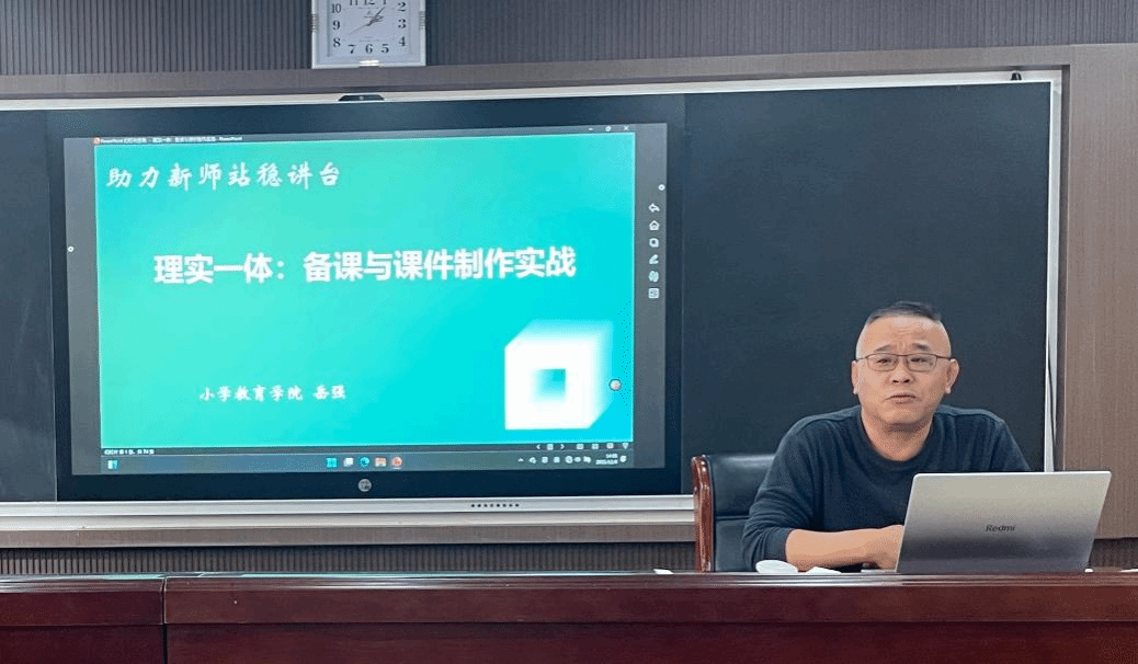 本次培训会以“弘扬教育家精神 夯实双师素养”为主题,聚焦新教师从“讲台新手”到“双师型骨干”的转型成长,通过靶向授课、实战赋能,推动新教师深刻把握职业教育类型特征,筑牢教学基本功,为培养高素质技术技能人才筑牢师资根基。培训会特邀小学教育学院岳强、王梅及素质教育部张庚三位专家,围绕“双师型”教师核心能力构成,从备课与课件制作、课程标准修订、教学板书设计三大实战维度,开展政策衔接与能力提升专题授课。