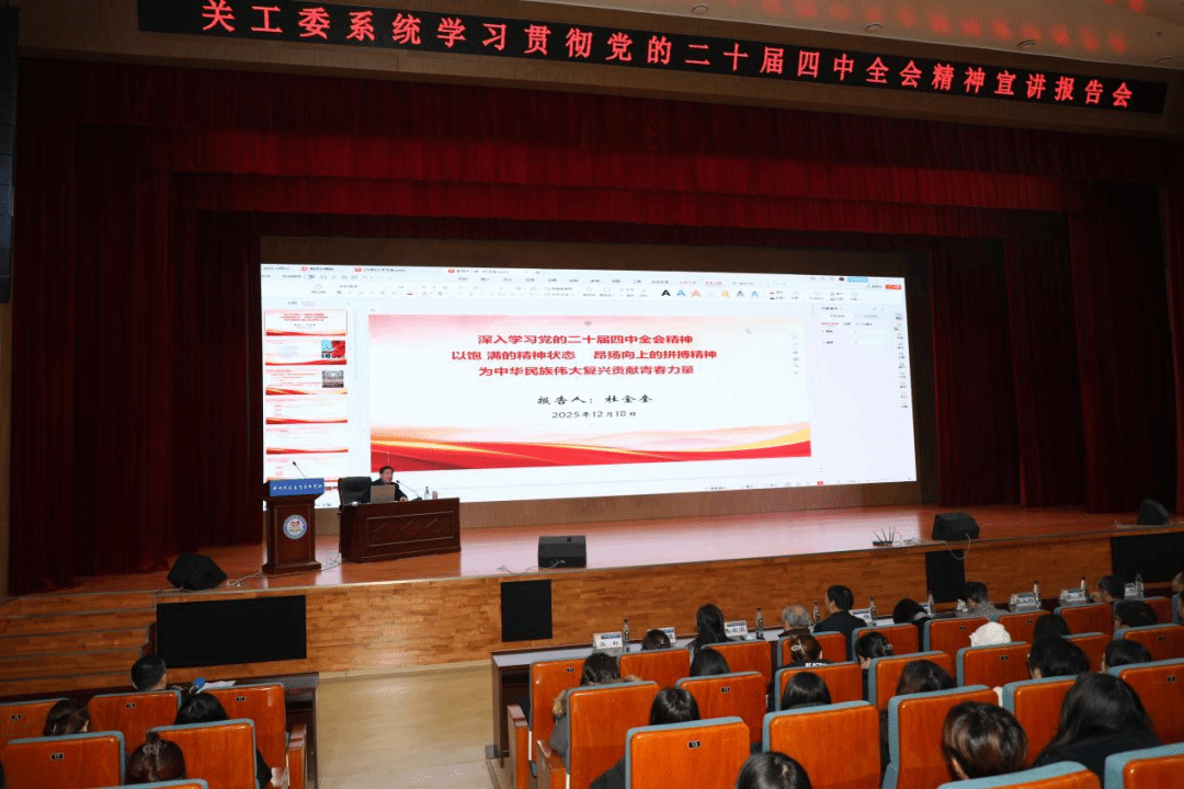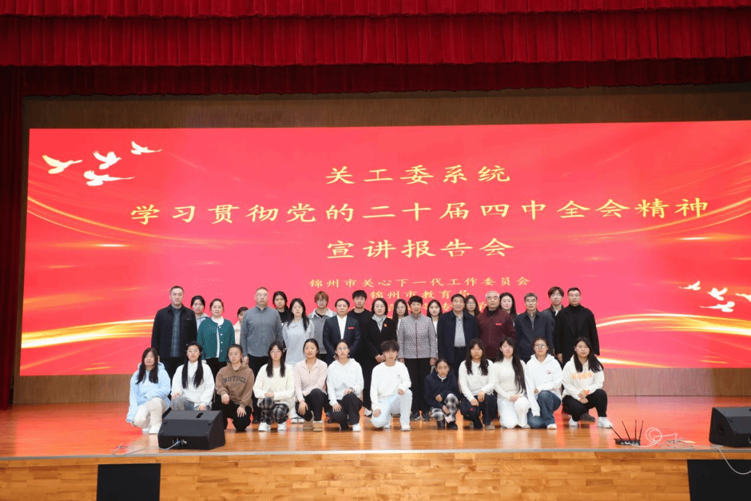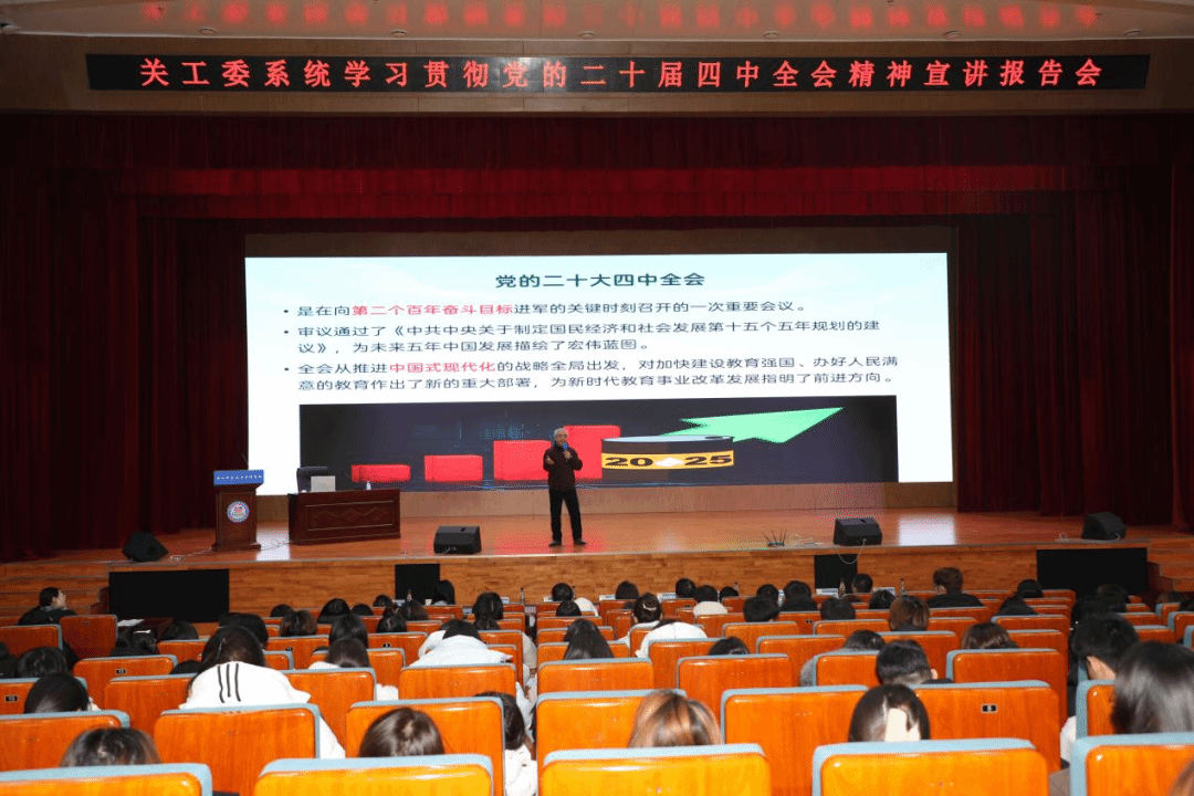 为深入学习贯彻党的二十届四中全会精神,引导青年学子筑牢思想根基、勇担时代使命, 12月18日,由锦州市关工委、锦州市教育局关工委、锦州师专联合主办的关工委系统学习贯彻党的二十届四中全会精神入校宣讲报告会在我校报告厅举行。市关工委副主任贾宁超,市委教育工委专职副书记、市教育局党组成员、市教育局关工委常务副主任刘姝,市教育局关工委秘书长汪国民,锦州师专党委副书记、校关工委副主任张宝利,党委委员、组织部部长马利以及300多名师生代表,现场聆听由市、局关工委“五老”工作团专家杜金奎、焦士学的报告,共同感悟全会精神内核,凝聚青春奋进力量。师专党委组织部副部长、学校关心下一代工作办公室主任姚璐主持报告会。