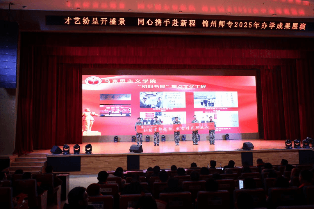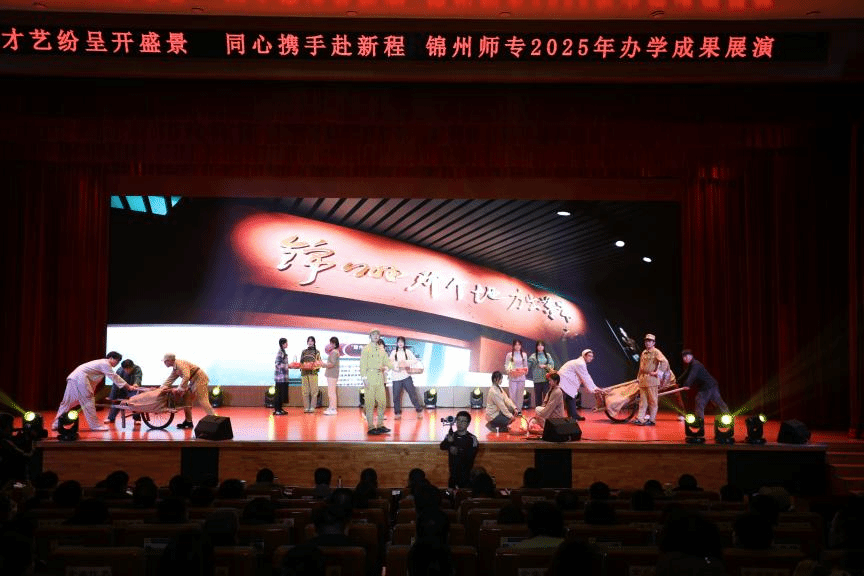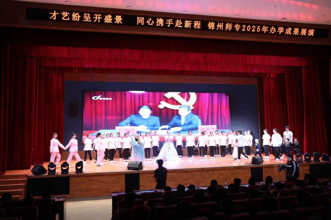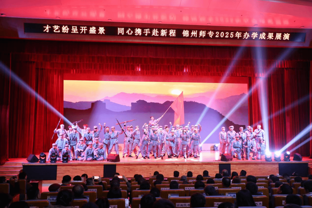 展演中,各学院以多元形式彰显育人特色。文学院的情景剧《锦州那个地方出苹果》以书香浸润校园,服务社会赢得广泛赞誉;美术学院以《非遗雅集 匠心华裳》为载体,让传统非遗技艺在课堂与实践中共焕新生,师道情怀如扎染般隽永绵长;学前与音乐教育学院师生携手体育学院学生演绎《血战到底》,以红色故事致敬英雄精神,同时带来托幼专业群建设成果展示《韵启童心 艺育未来》及器乐表演《九州同》,尽显“以赛促教、以赛赋能”的专业实力与青春风采。