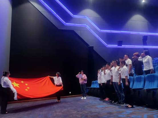 观影活动结束后,张碧娜副院长组织全体教师面对国旗进行了宣誓;于昕院长主持召开了《守望青春》观影活动座谈会。