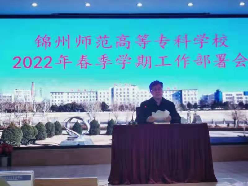 2月25日,我校在图书馆报告厅召开了2022年春季学期工作部署会。校长陈建军总结2021年工作并解读2022年行政工作计划。学校领导班子和全体中层干部参加会议。