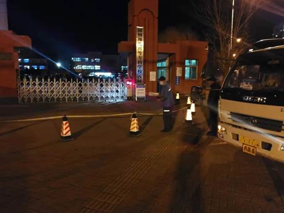 我大多都是在晚上到学校门口隔离区等待取物品或者送物品。在校门口隔离区等待,专门人员将物品送到消杀地点完成消毒,校内人员进入指定地点取走,全程实现校内、校外人员无接触配送。
