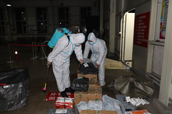 设立快递拆封领取专区,牢筑快递末端最后一道“防火墙”。 市内包裹和市外邮件每天9:00至19:00由学校和中国邮政集团指定人员按学校防疫要求和领取办法派发,各学院师生实行错峰领取,避免人员聚集。邮件外包装由派件人与收件人面对面拆除消杀,外包装由派件人统一运出学校销毁。督促取件师生个人领取时做好手部消毒,实现快递收件过程 “零污染”“无接触”。
