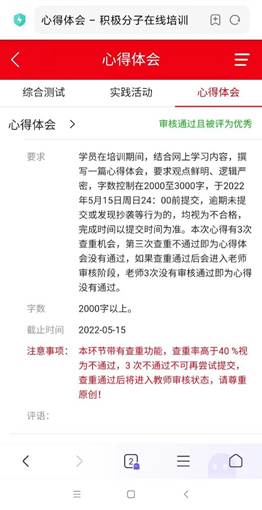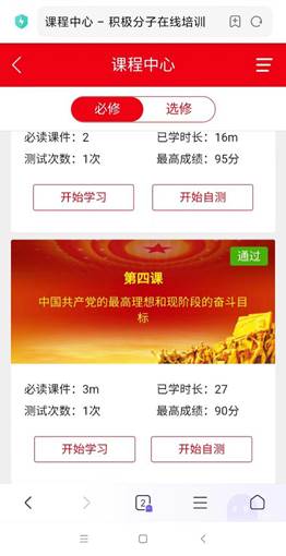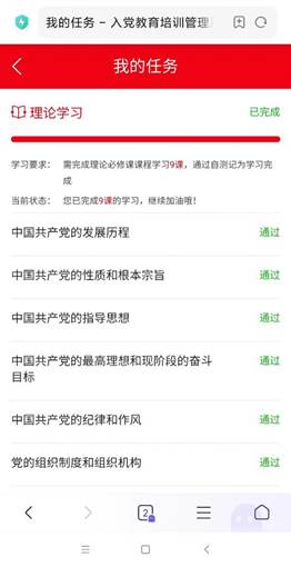 254名入党积极分子,68名拟发展对象自主登录“党旗飘飘高校智慧党建平台”,进入各自的学习专区,认真展开在线学习。培训班学习由理论课程学习、章节测试答题、撰写心得体会、理论考试等部分组成。入党积极分子培训总计24学时,培训课程以中国共产党百年奋斗的光辉历程为开篇,围绕党的性质、初心、宗旨,马克思主义中国化形成的理论成果,习近平新时代中国特色社会主义思想和基本方略,党的最高理想,党的组织制度及党的纪律,党员的义务和权利,入党的规定、基本程序,入党动机等专题逐一讲授。拟发展对象培训总计15学时,学习内容涵盖“深入学习新党章,巩固树立党章意识”“按照党员标准严格要求自己,以实际行动争取做一名合格的共产党员”“ 党史、新中国史、改革开放史、社会主义发展史学习教育”“学习党纪党规,切实加强纪律意识”等专题。全体学员按照学习进度在平台完成视频学习与各章节的测试答题,并结合理论学习内容提交了学习心得体会,“多管齐下”,确保了学员对相关理论知识的深入理解与把握。