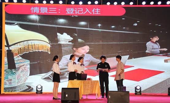 旅游英语专业学生模拟实习场景。2023年4月,19名学生在专业课教师带队下,到北京贵宾楼饭店进行为期18天的“工学结合”企业实践活动