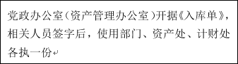 第九条 党政办公室(资产管理办公室)根据填制无误的“低值耐用品资产卡片”,开具“低值耐用品入库单”、编制记账凭证、记入“低值耐用品资产总账”和“低值耐用品资产明细账”,生成资产编号。