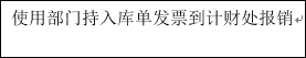 第十条 低值耐用品采购经办人,持“低值耐用品资产入库单”、购货发票,到计财处办理报销手续。