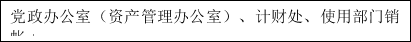 (一)党政办公室(资产管理办公室)根据上级部门的批复,通知有关部门的资产管理员,到党政办公室(资产管理办公室)办理注销资产账、资产卡的手续。