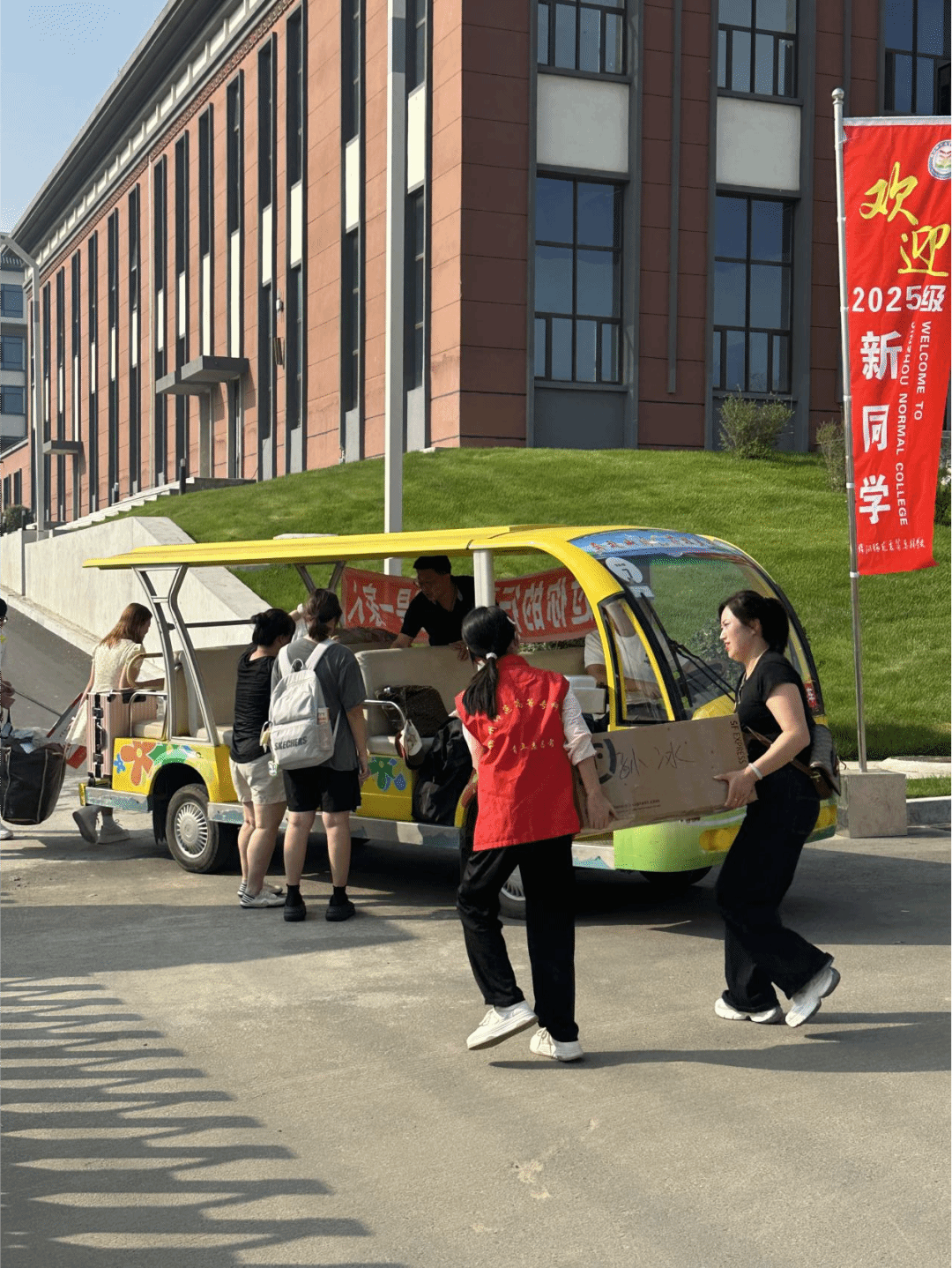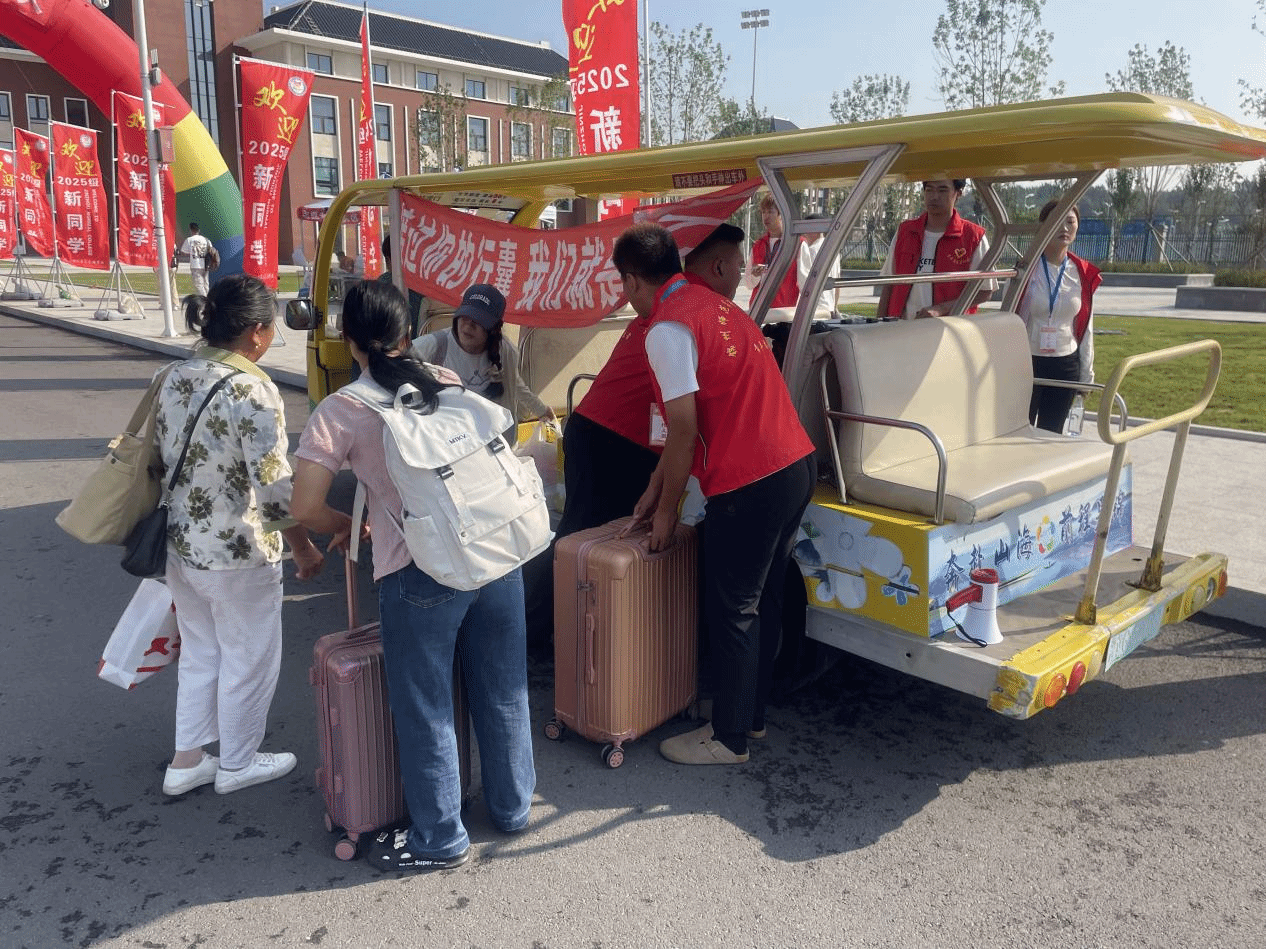 学校安排多辆校内摆渡车,负责将新生、家长及行李运送至公寓楼附近的行李寄存处,无微不至的贴心服务,让“初来乍到”变成“如归故里”。