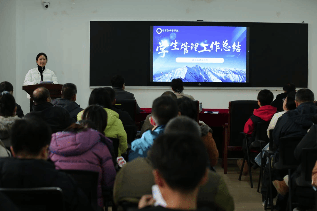 会议最后,王宏岩作总结讲话。她对学校2024年学生工作取得的成绩表示肯定与祝贺,对全体学工人员的辛勤付出表示衷心的感谢。她指出,学生工作是丰富多彩、生动活泼的,在工作中必须要有主动性、创新性和极强的奉献意识,学工队伍必须要团结才能产生巨大的力量。她强调,当前学校发展面临新形势、新机遇、新挑战,学生工作也必须适应新变化、新情况和新需求,让思政工作更有温度、更富人情,塑造具有高辨识度的学工品牌,凝练特色,砥砺奋进,持续提升管理效能和服务水平,书写学工事业的新篇章。