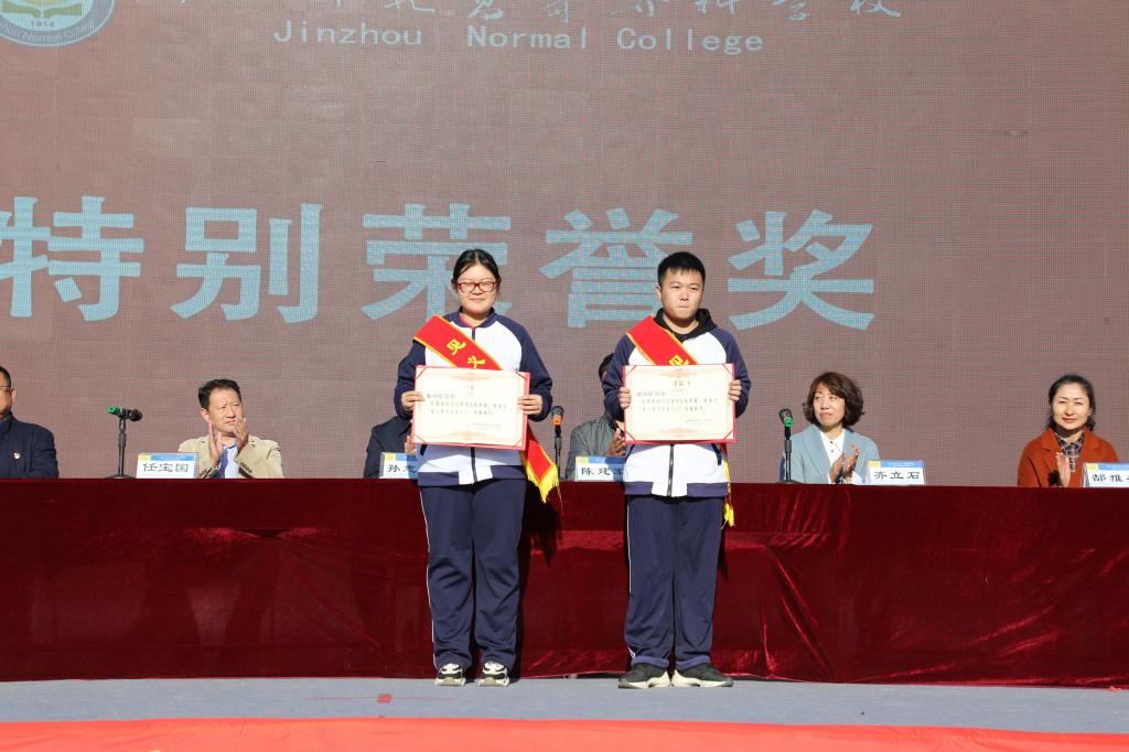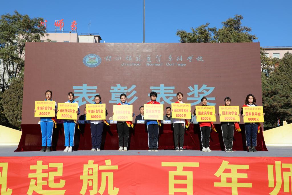 在激昂雄壮的国歌声中,开学典礼拉开序幕。齐立石公布锦州师专2019-2020学年度先进集体及先进个人表彰决定,出席典礼的领导在同学热烈的掌声中为获奖学生颁奖。颁奖仪式上,王宏岩着重表彰了在国庆期间,为突发失血性贫血的机电系王艳同学献血的计算机系学生解书玟、颜源朕,孙志海、陈建军为两位同学颁发见义勇为荣誉证书及营养慰问金。
