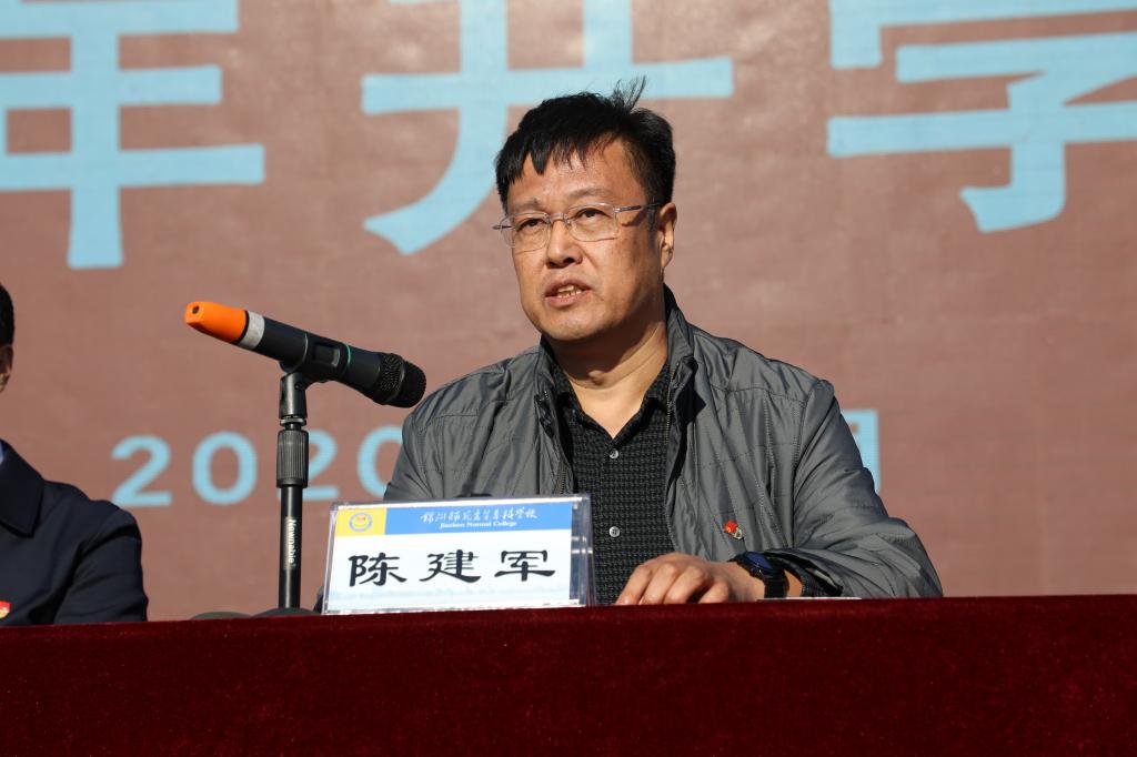 陈建军在开学典礼上作总结讲话,对来自全国17个省份的2881名2020级新生表示诚挚的欢迎,向始终坚守师者初心、耕耘在育人圆梦路上的教职员工表示衷心的感谢和崇高的敬意。陈建军对全体师生提出三点建议,一是对国家,要有报国之志。用知识、思想和生命服务于祖国,亮出务实致用、知识报国的青年气势,亮出投笔从戎、参军报国的男儿志向!二是对社会,要有责任担当。争做践行责任担当的典范,向社会传递了师专青年强大的正能量!三是对个人,要坚毅执着,涵育德行。在顺境中不浮躁,在逆境中不消沉,乐观向上、勇往直前!