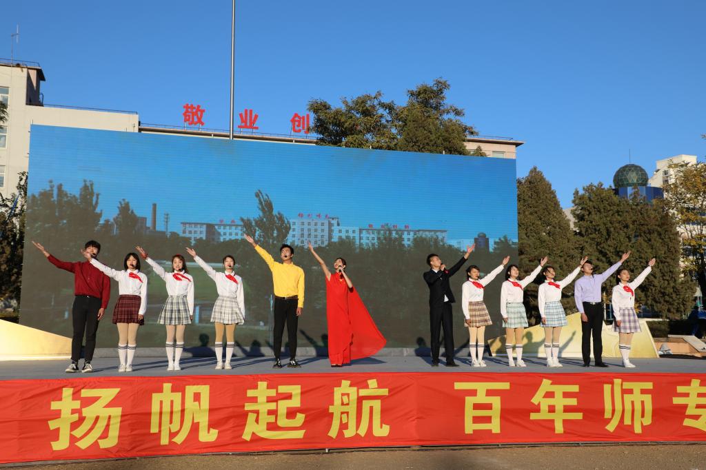 学校党委书记孙志海点燃象征师专精神的火炬,由优秀师生代表传递锦州师专一百零六年来凝结的智慧与力量,将开学典礼的气氛推向高潮。副校长王宏岩领诵校训,希望同学们秉承“学高身正 敬业创新”的校训,用负责、进取、从容的心境去迎接梦想成真的绚烂时刻!