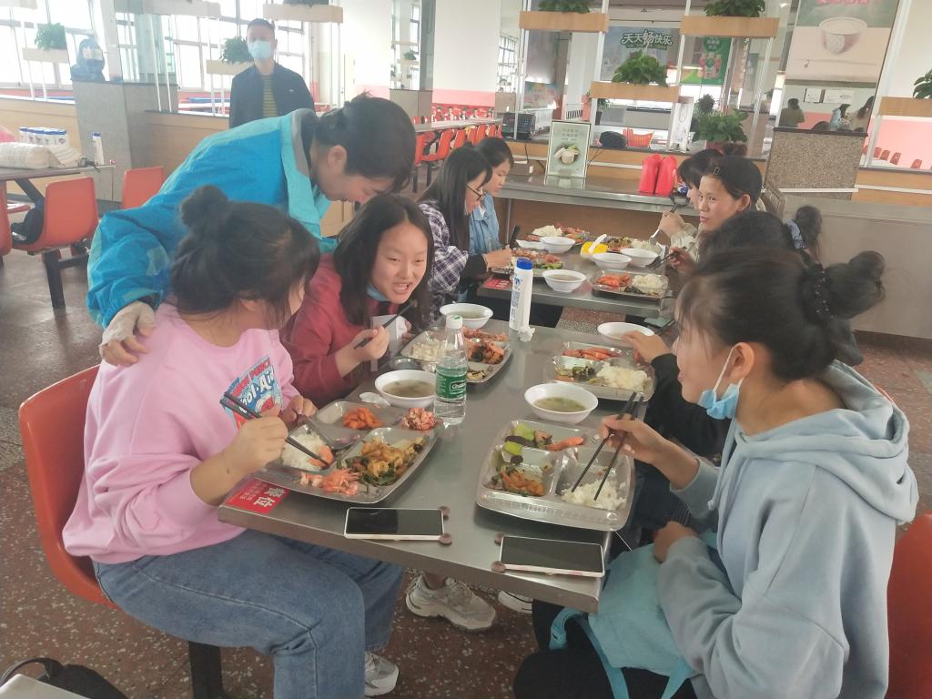 返回学校后,同学们领取了学校为每位同学准备的水杯、月饼、洗涑用品等纪念品,并与老师们在学校食堂愉快就餐。