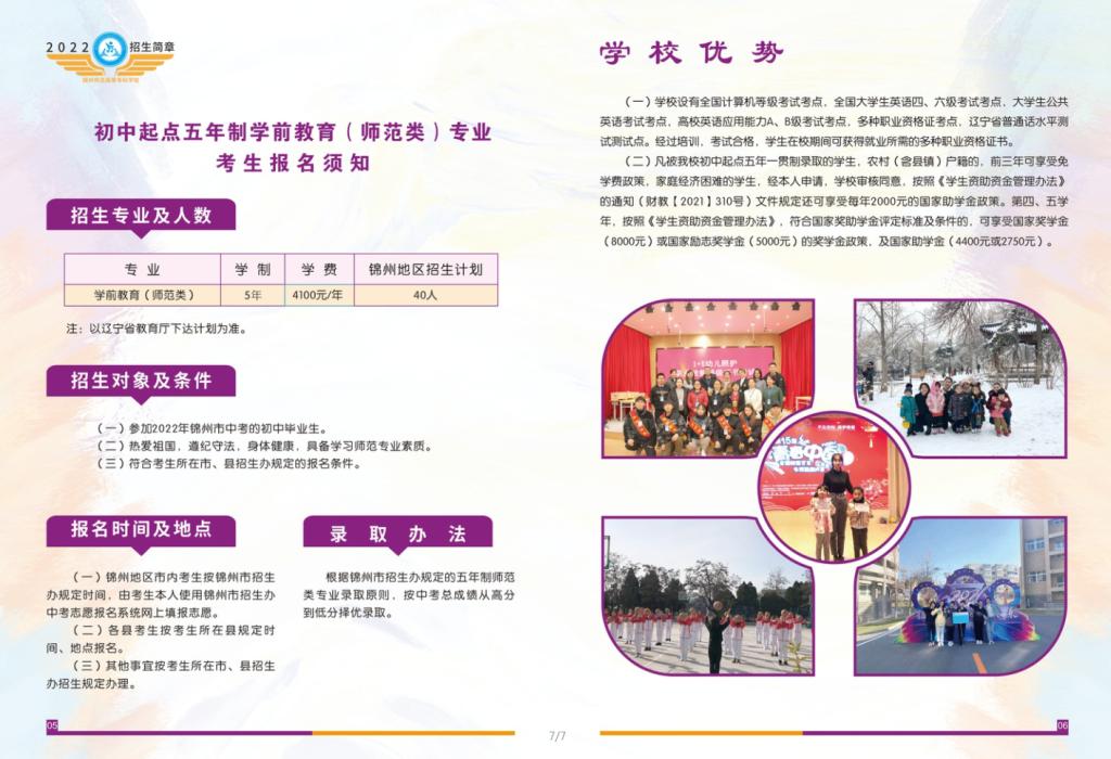 锦州师范高等专科学校2021年招生简章(高中起点)