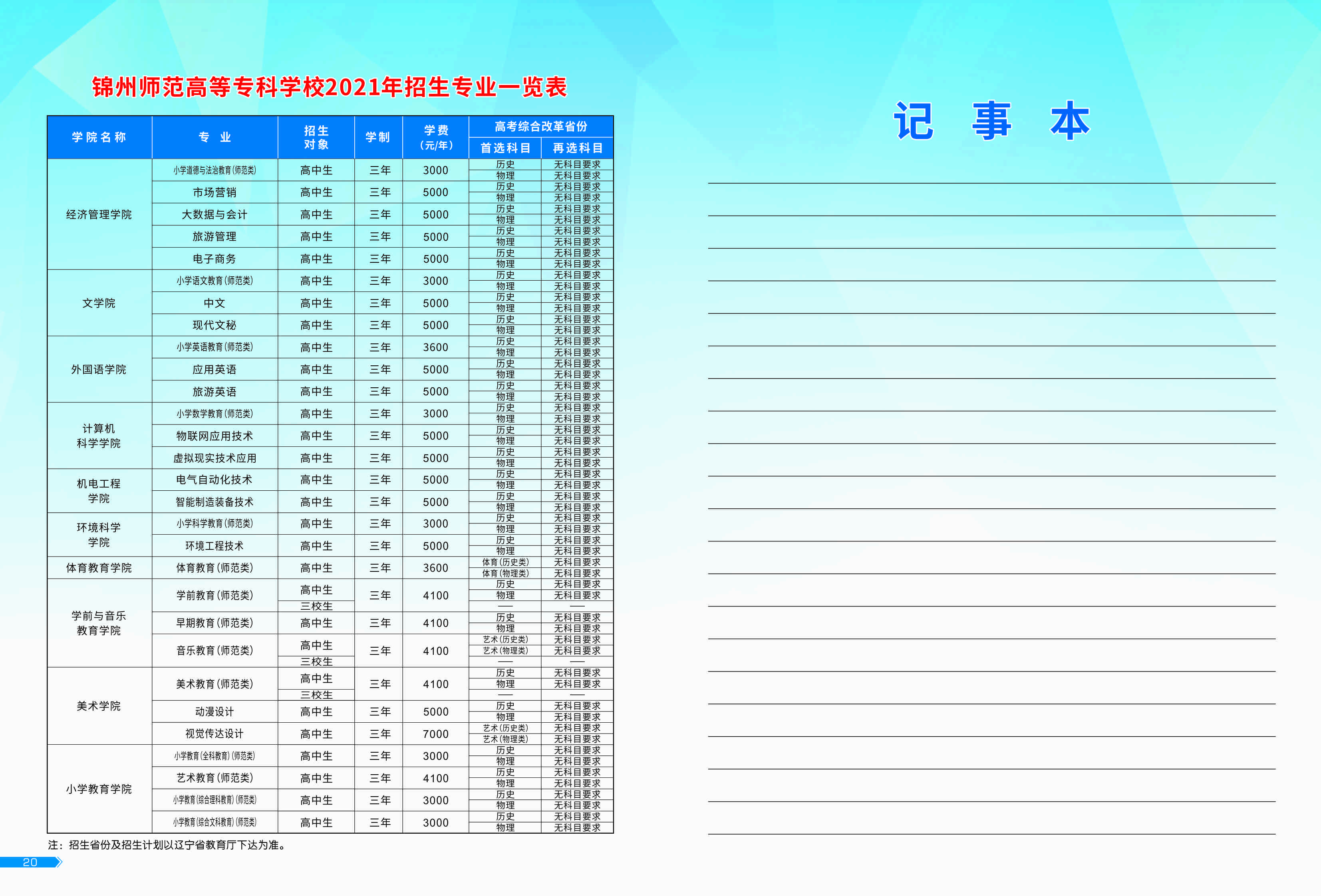 锦州师专2020年招生简章