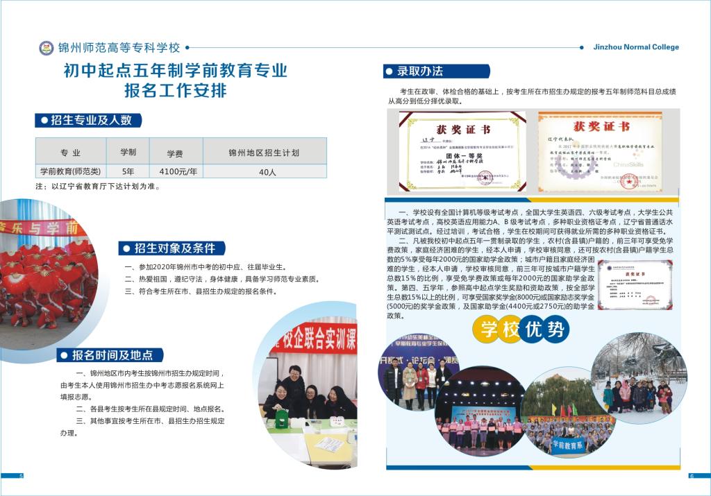 锦州师专2020年初中起点五年制大专学前教育(师范)专业招生简章